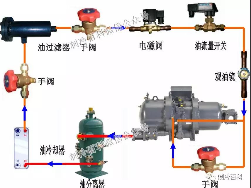 另一方面機器缺油無法運行,需要不斷補充潤滑油,而這則會導致系統里的潤滑油越積越多,造成惡性循環,增加運行費用,降低運行可靠性。一般情況下,制冷劑氣體流量1%以下油氣混合物在系統中循環是允許的。