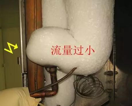 熱力膨脹閥開啟度太小:就會造成供液不足,使得沒有足夠的氟利昂在蒸發器內蒸發,制冷劑在蒸發管內流動的途中就已經蒸發完了,在這以后的一段蒸發器管中沒有液體制冷劑可供蒸發,只有蒸汽被過熱。造成蒸發速度減慢,單位容積(時間)制冷量下降,制冷效率降低。