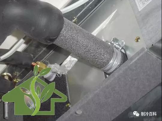 排水管主要是用于室內(nèi)機(jī)的冷凝水排放,它與室內(nèi)機(jī)連接的時(shí)候是采用軟連接,要用卡箍卡死,如果連接不嚴(yán)實(shí),冷凝水就會(huì)從縫隙中流出。