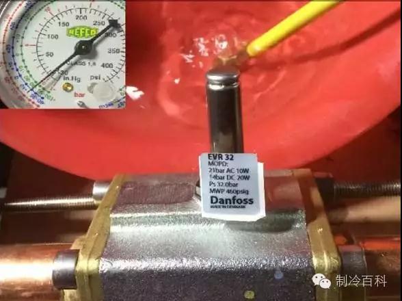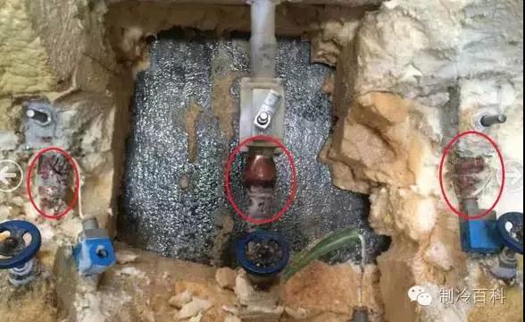 “只聽到“膨”的一聲巨響,保溫棉都給炸開了,到處都是制冷劑”現(xiàn)場(chǎng)用戶這樣描述到。實(shí)際情況如上圖所示,三個(gè)電磁閥進(jìn)口均有不同程度的鼓包。電磁閥爆裂時(shí)間點(diǎn)發(fā)生在停機(jī)狀態(tài)下。