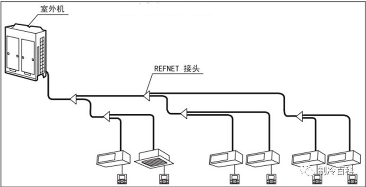 VRV變頻空調機組的工作原理:多聯機就是用一個大功率的室外主機帶動多個室內機,由于采取的是并聯方式,所以可方便地進行分區控制。輸送能量的介質是制冷劑,可以用細小的銅管代替粗大的風管,噪音也大大降低。由于冷媒分流技術和電氣控制技術需要有較高的水準,并且零部件的專用性很強。
